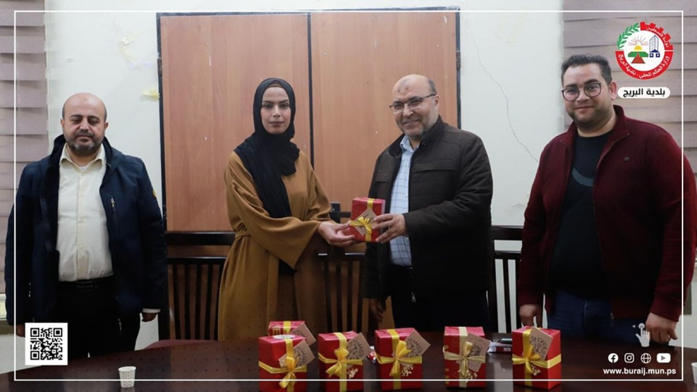 رئيس بلدية البريج م. أيمن الدويك، يكرّم الموظفات والمتطوعات تقديراً لجهودهن، وعطائهن، جاء ذلك بحضور نائب الرئيس أ. نزيه البنا، وعضو المجلس البلدي أ. عبير المزروع،
