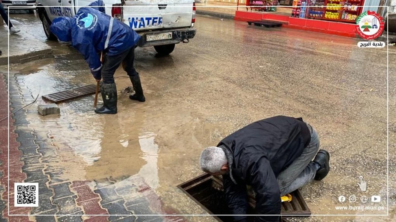 ضمن جهود طواقم الطوارئ في بلدية البريج خلال المنخفض