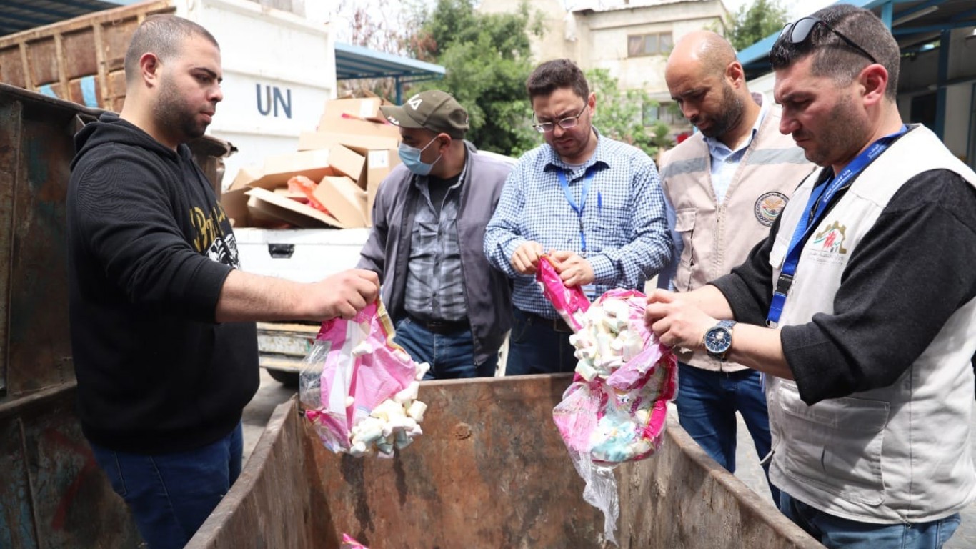 قسم الصحة والبيئة في بلدية البريج بالتعاون مع مباحث التموين، ووزارة الاقتصاد الوطني، وشرطة البلديات، خلال إجراء جولة تفتيش صحي على سوق الخميس الأسبوعي، وضبط وإتلاف كميات من المارشملو التالفة، يقدر وزنها بحوالي 250 كيلو.