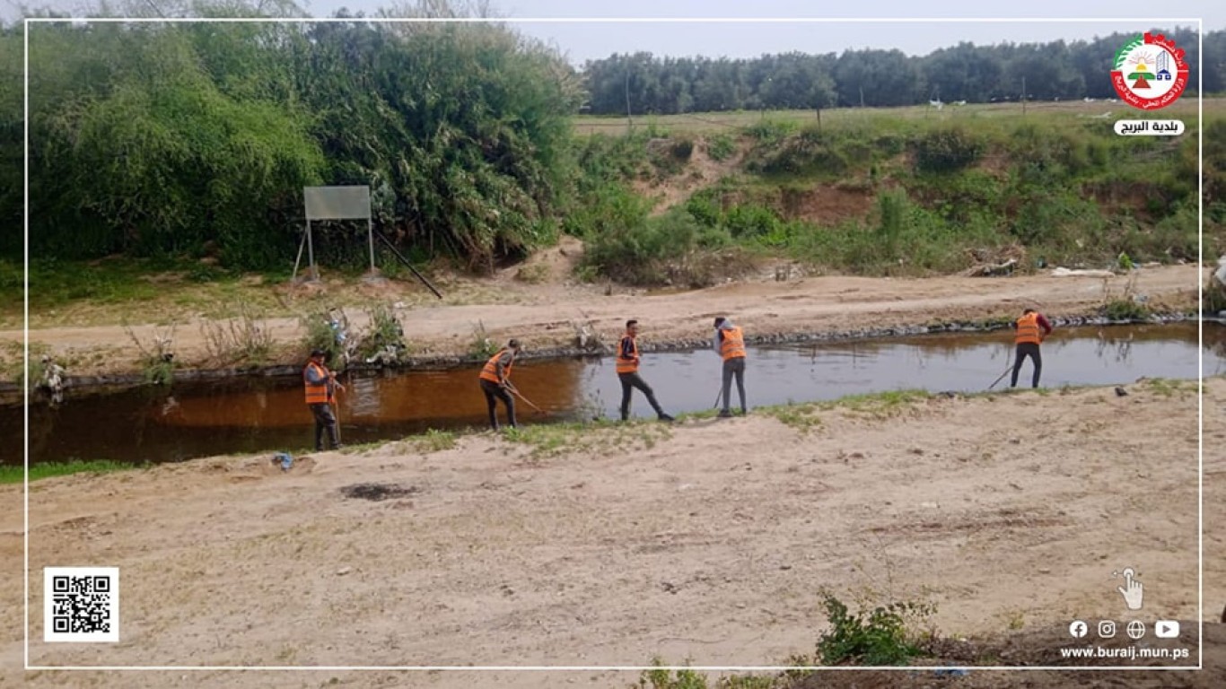 ضمن جهوده المستمرة في مكافحة حشرة البعوض خلال أعمال رش البرك الجانبية بالمنطقة الغربية من وادي غزة بمادة ,BTi وأعمال إزالة الأعشاب العائمة في حواف المجر