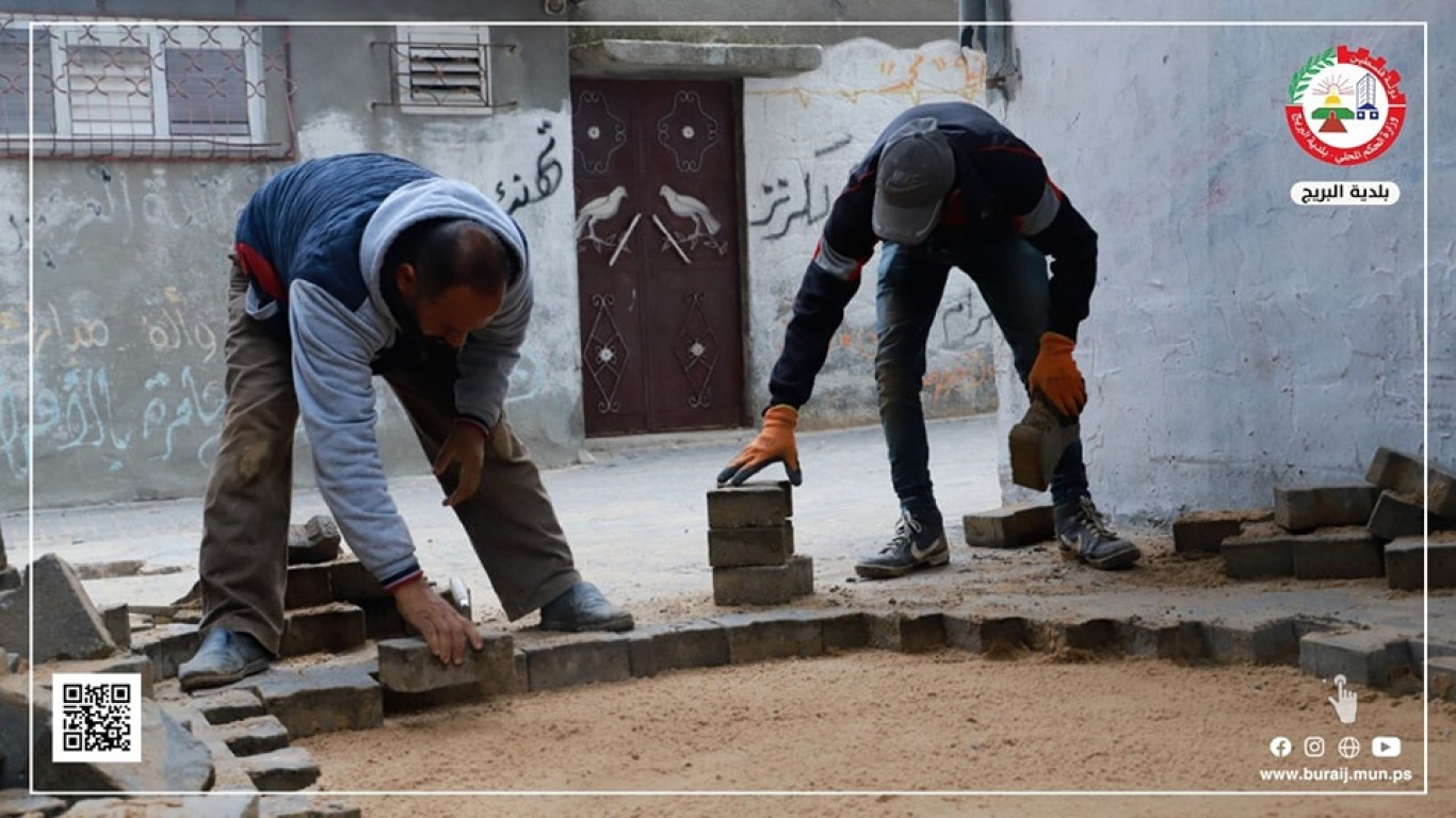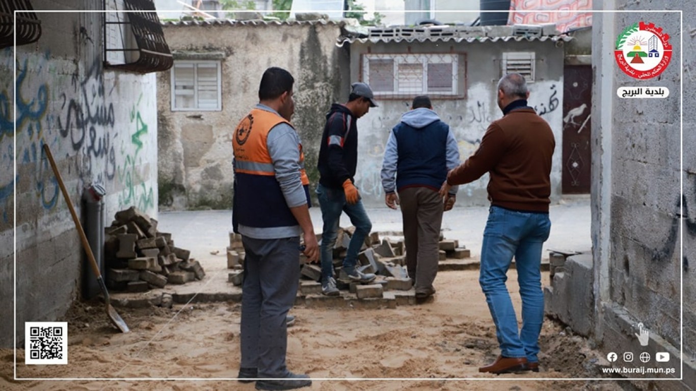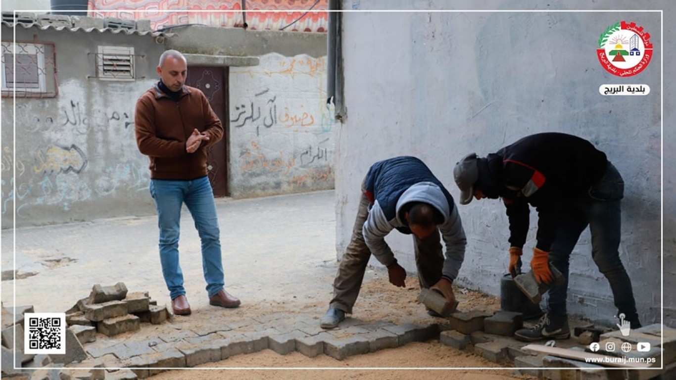 قسم المشاريع والمواصفات خلال أعمال تبليط شارع في بلوك 4، بالقرب من آل وشاح وحسين، ضمن خطة البلدية لتطوير هذه المنطقة، حيث تم مسبقاً تمديد خط صرف صحي وخط مياه للمنطقة.