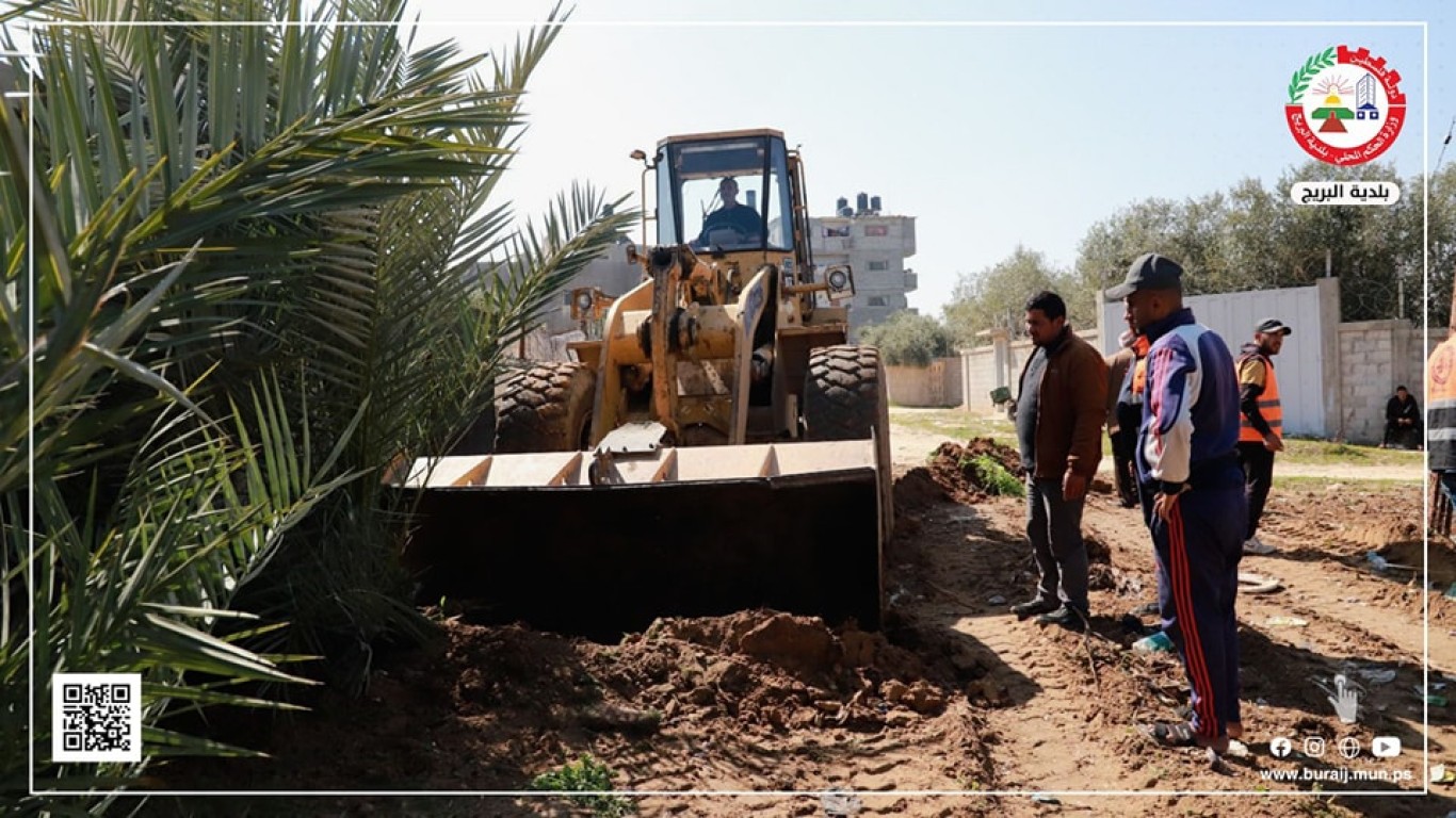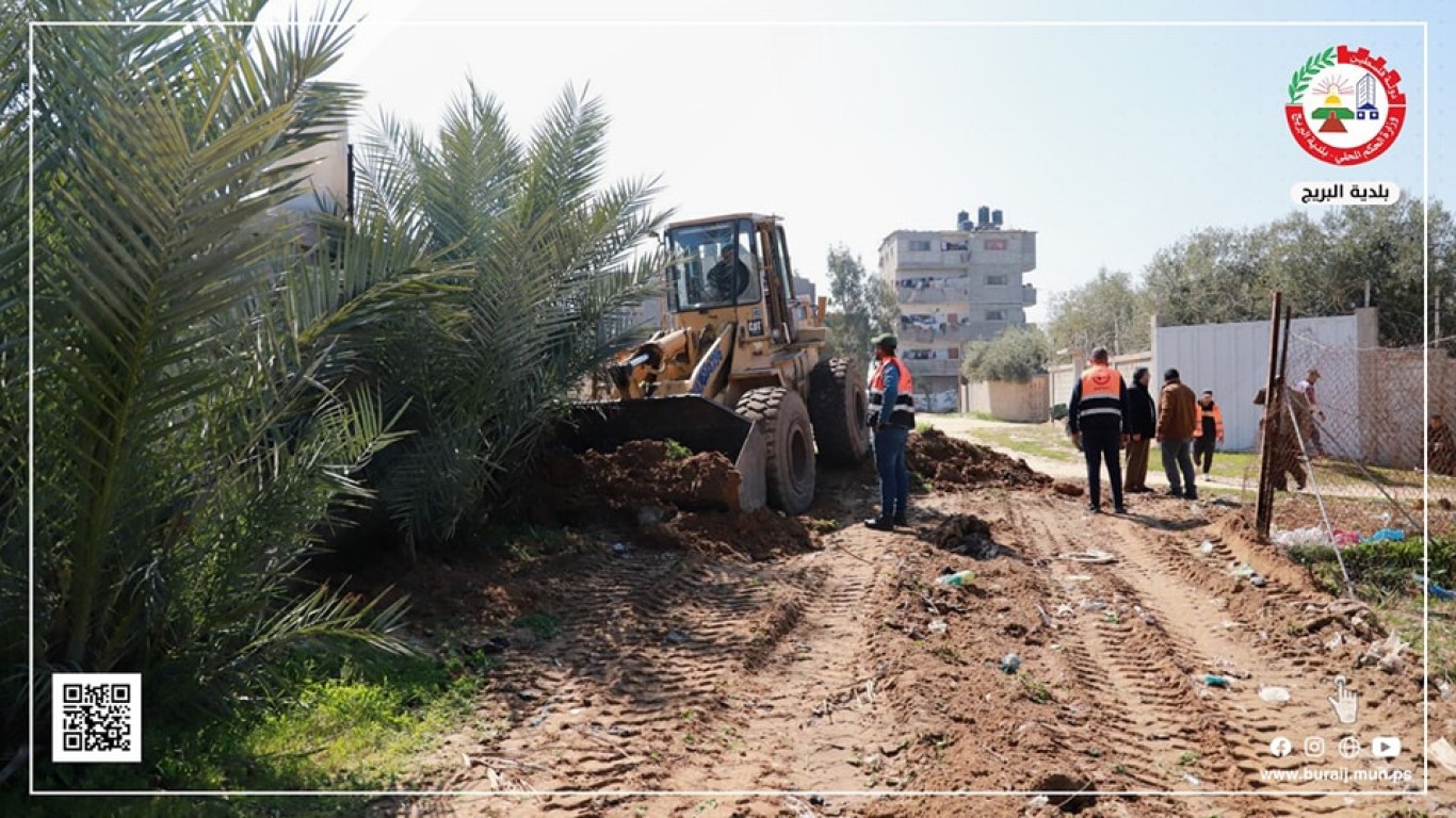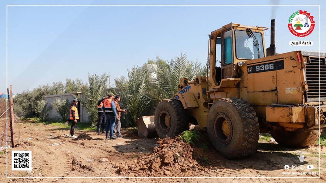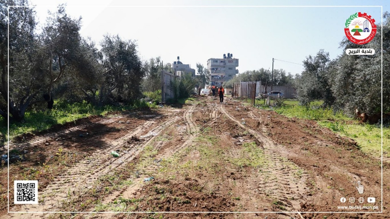 الطواقم الفنية في بلدية البريج وبمشاركة قسم التخطيط الحضري، خلال أعمال فتح الشارع الواصل بين منطقة سنجاب وأرض المصدر بعرض 8 أمتار، حيث يساهم هذا الشارع بشكل كبير في تسهيل حركة المركبات والمارة بين وسط البريج والمنطقة الجنوبية.