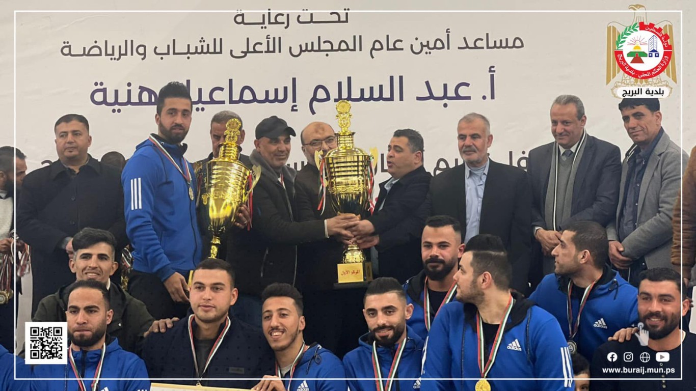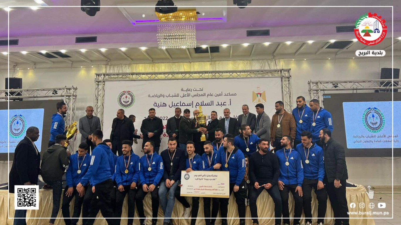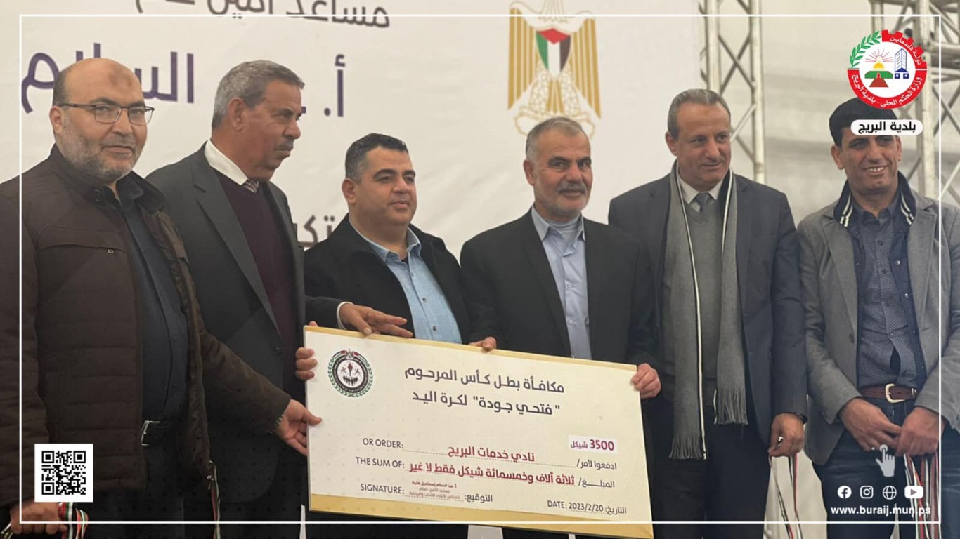 رئيس بلدية البريج م. أيمن الدويك يكرم مساعد أمين عام المجلس الأعلى للشباب والرياضة أ. عبد السلام هنية ورئيس نادي خدمات البريج أ. عدنان عيسى لجهودهم الحثيثة والمعطاءة في رعاية ودعم الرياضة الفلسطينية، جاء ذلك خلال حفل تكريم أبطال الموسم الرياضي 2022-2023 لدوري الدرجتين الثانية والثالثة لكرة القدم وأبطال دوري وكأس القدم البتر وبطل كأس اليد ومنتخب البيسبول .