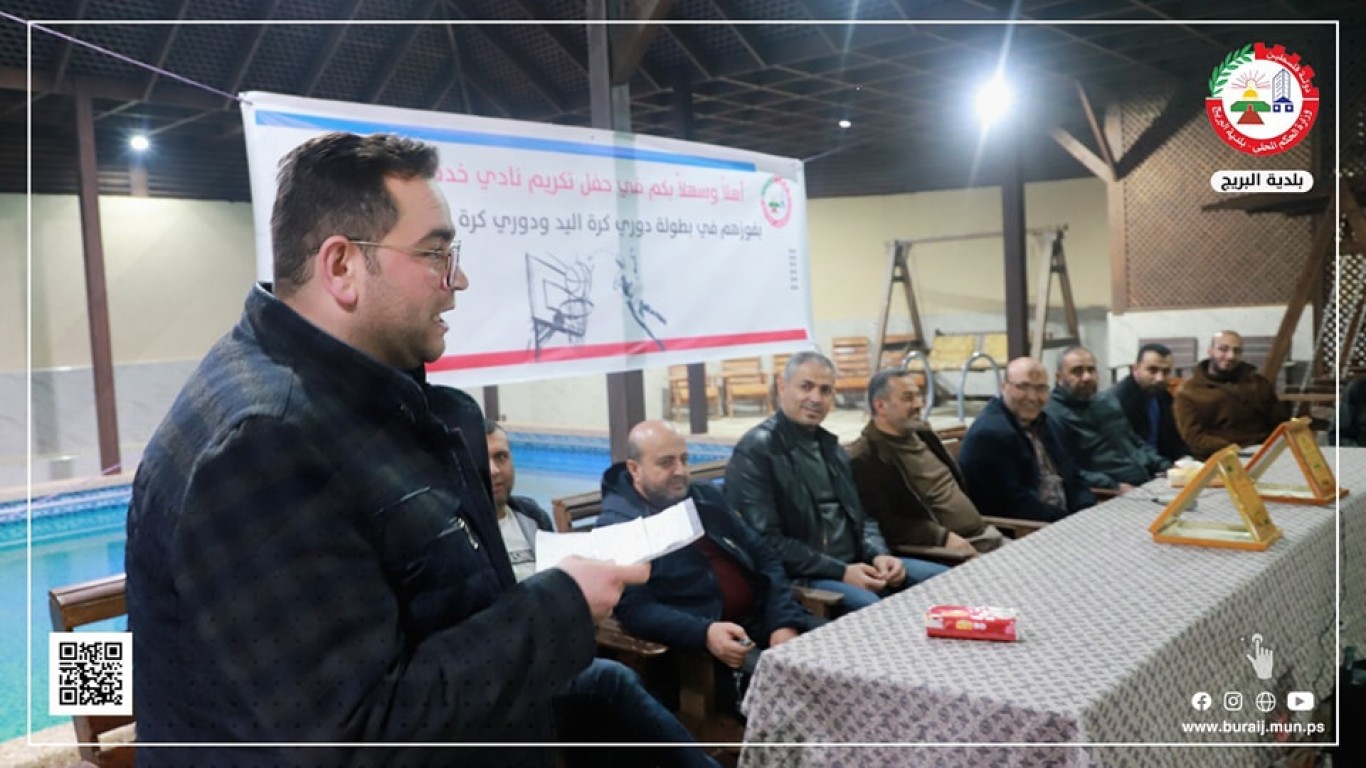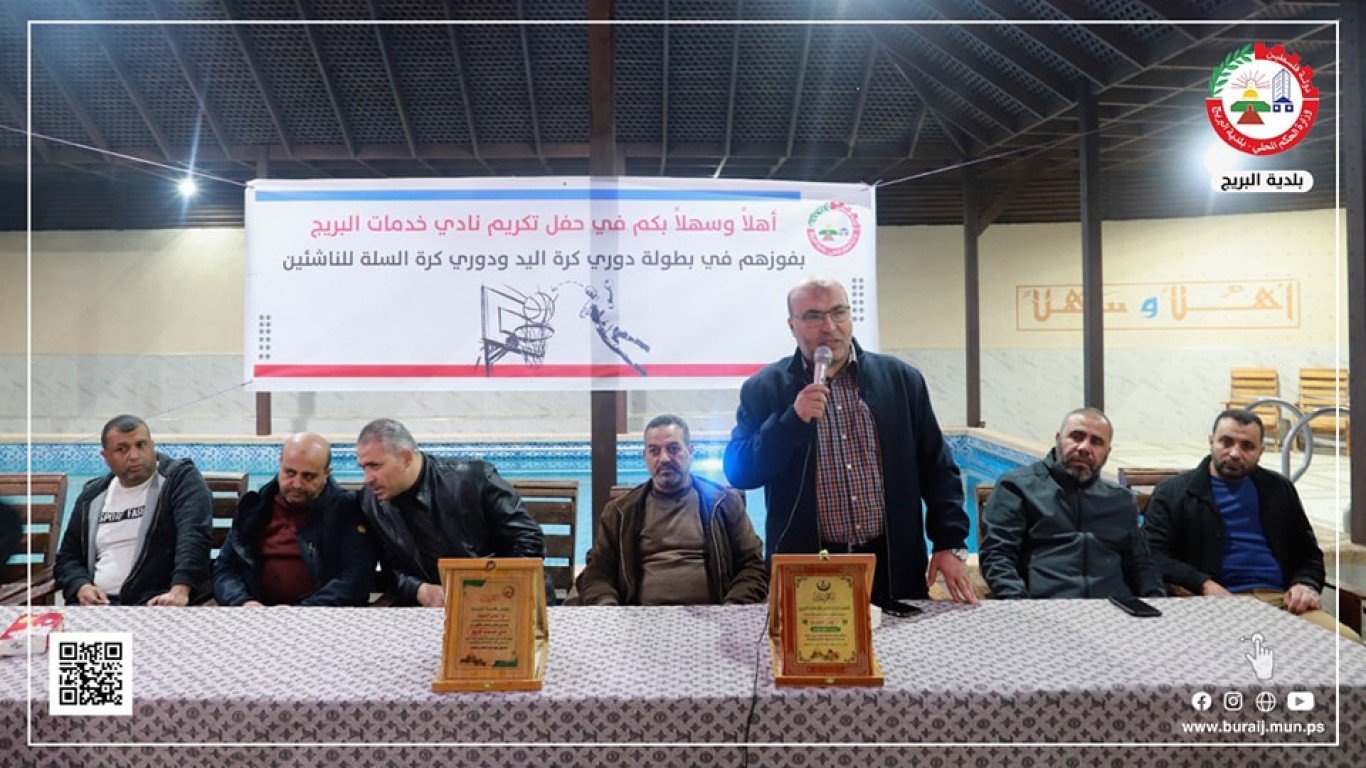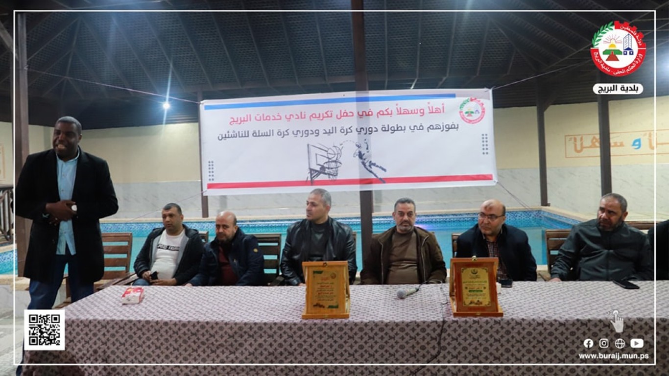كرمت بلدية البريج ممثلة برئيسها م. أيمن الدويك وأعضاء المجلس البلدي مساء أمس الاثنين 6/3/2023 نادي خدمات البريج لفوزهم ببطولة دوري كرة اليد ودوري كرة السلة للناشئين خلال احتفال كبير.