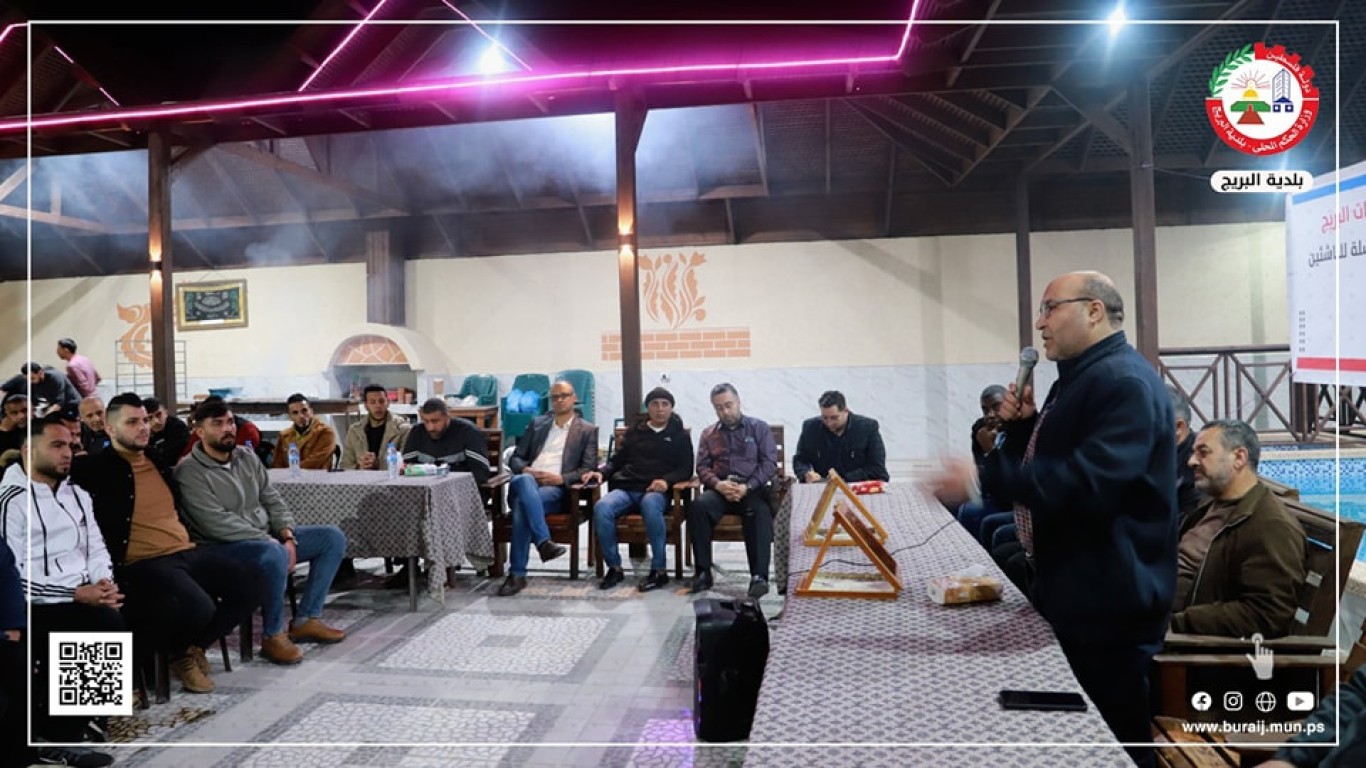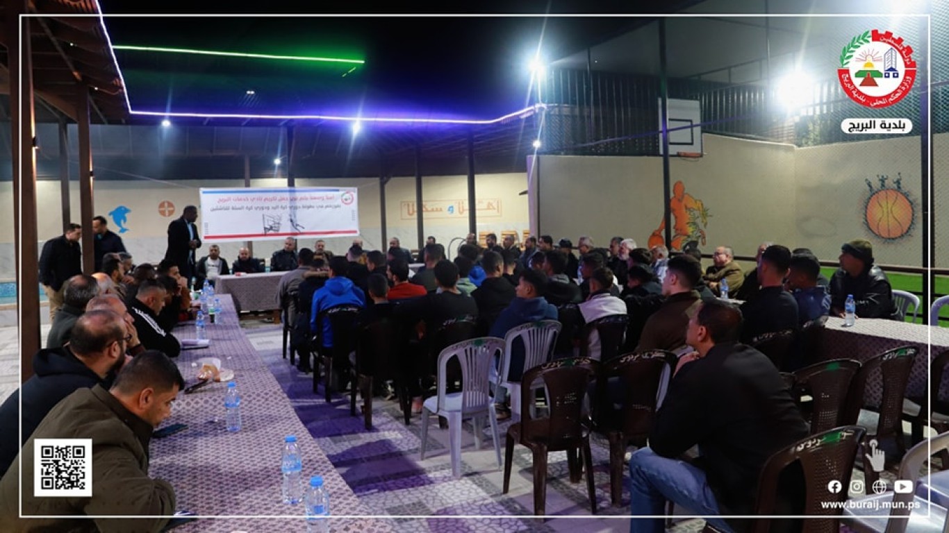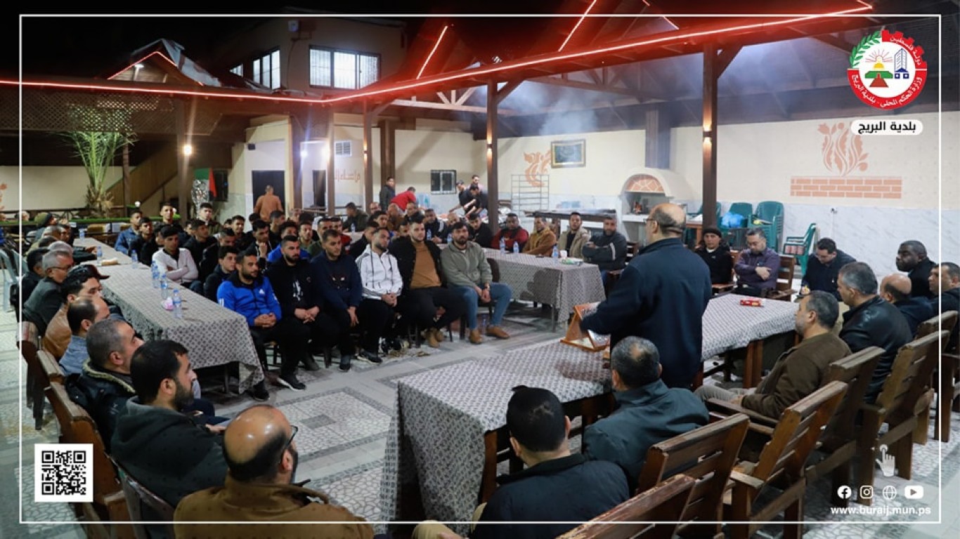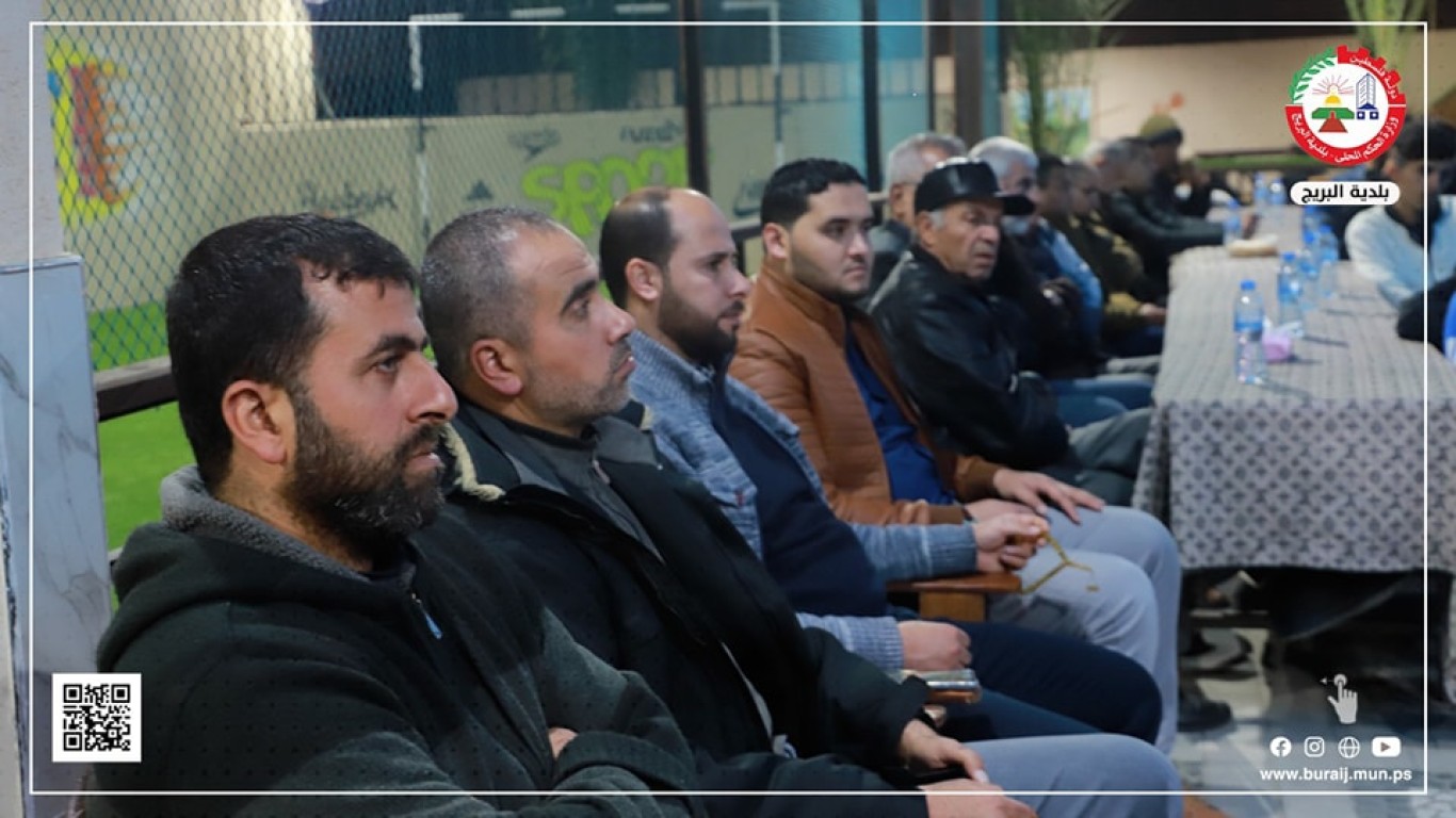 حيث رحب م. أيمن الدويك بالحضور وبإدارة نادي خدمات البريج، والمخاتير والوجهاء ولجان العمل الوطني والشخصيات الإعتبارية ،مؤكداً على دعم البلدية للمجال الرياضي والمجالات الأخرى .