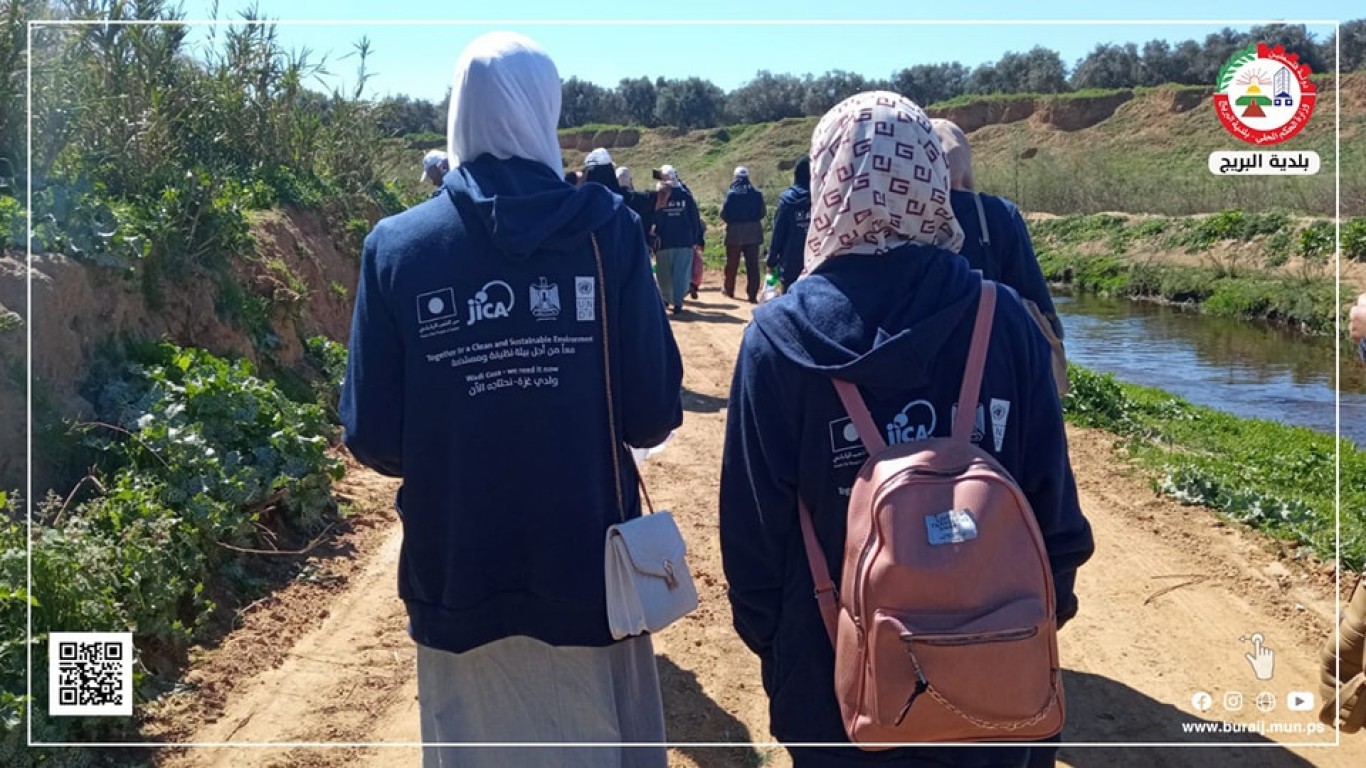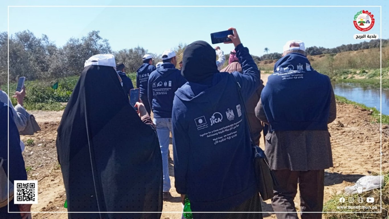 جانب من مشاركة موظفي بلدية البريج في المسار البيئي في وادي غزة، والذي نظمه مجلس الخدمات المشترك للتخطيط والتطوير وادي غزة بدعم من الـ UNDP Palestinian JICA Palestine Office مكتب جايكا فلسطين فلسطين ضمن مشروع تطوير وادي غزة.