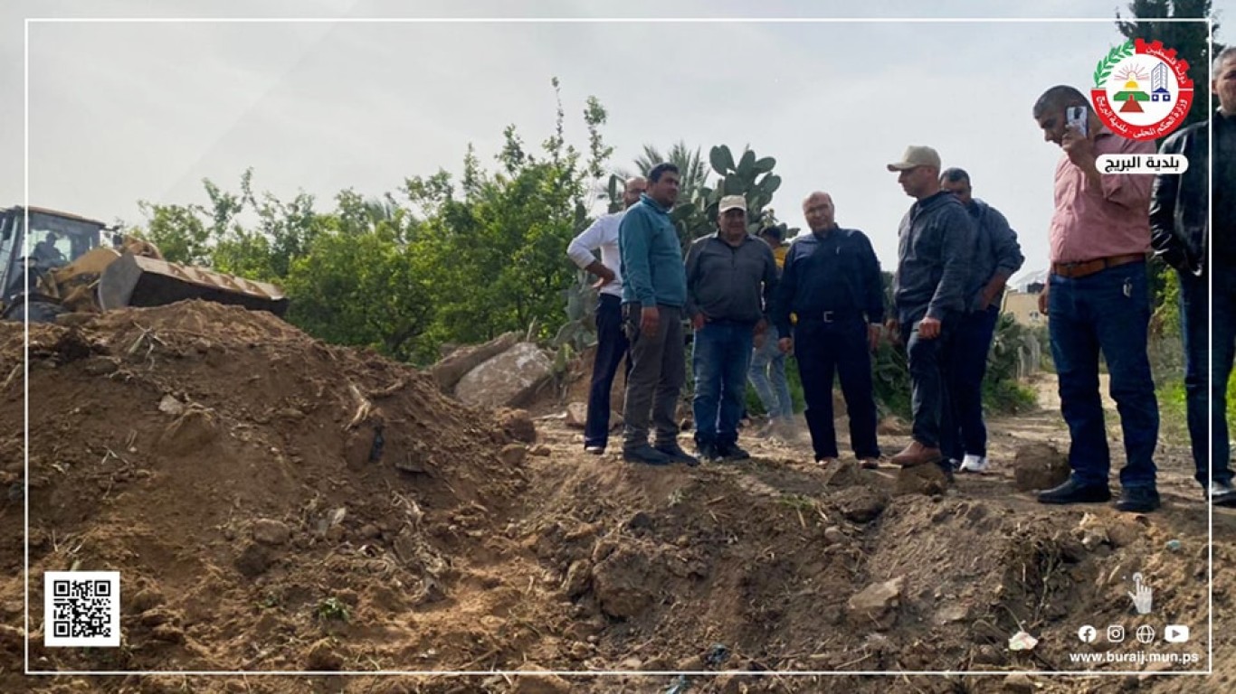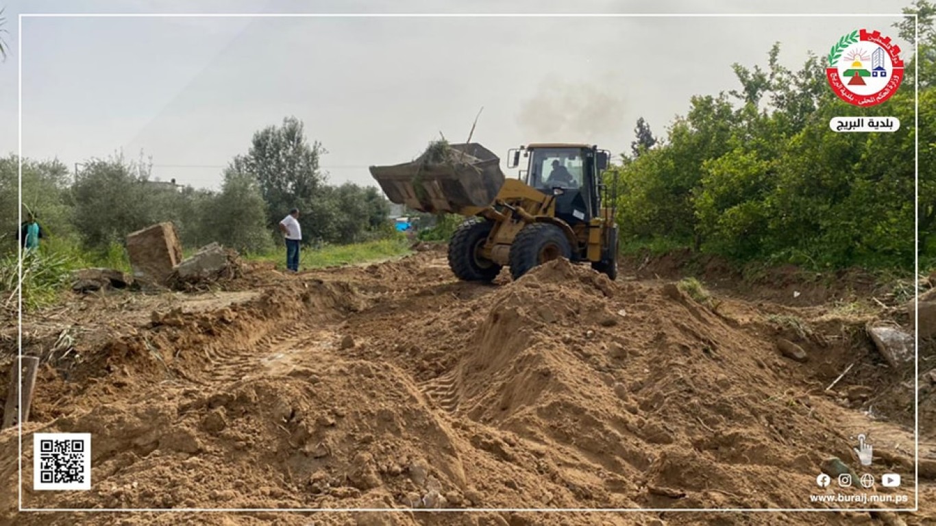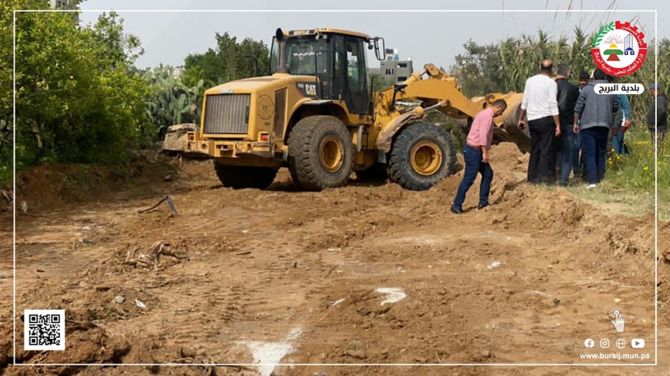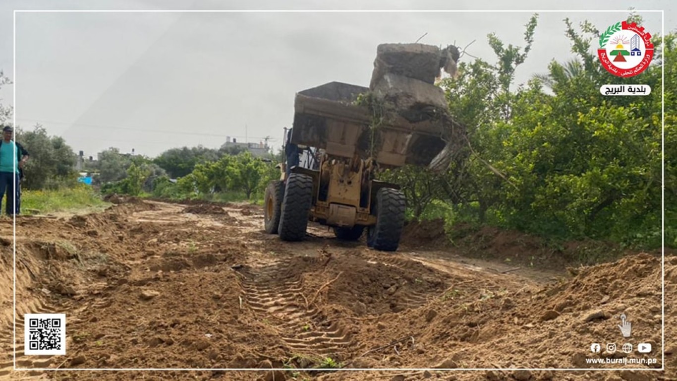 بلدية البريج تبدأ بأعمال فتح مسار شارع وادي غلبة وشارع ٧٠، وذلك تمهيداً لتنفيذ خط صرف صحي يعمل على الاستغناء عن محطة ضخ بلوك ٧.