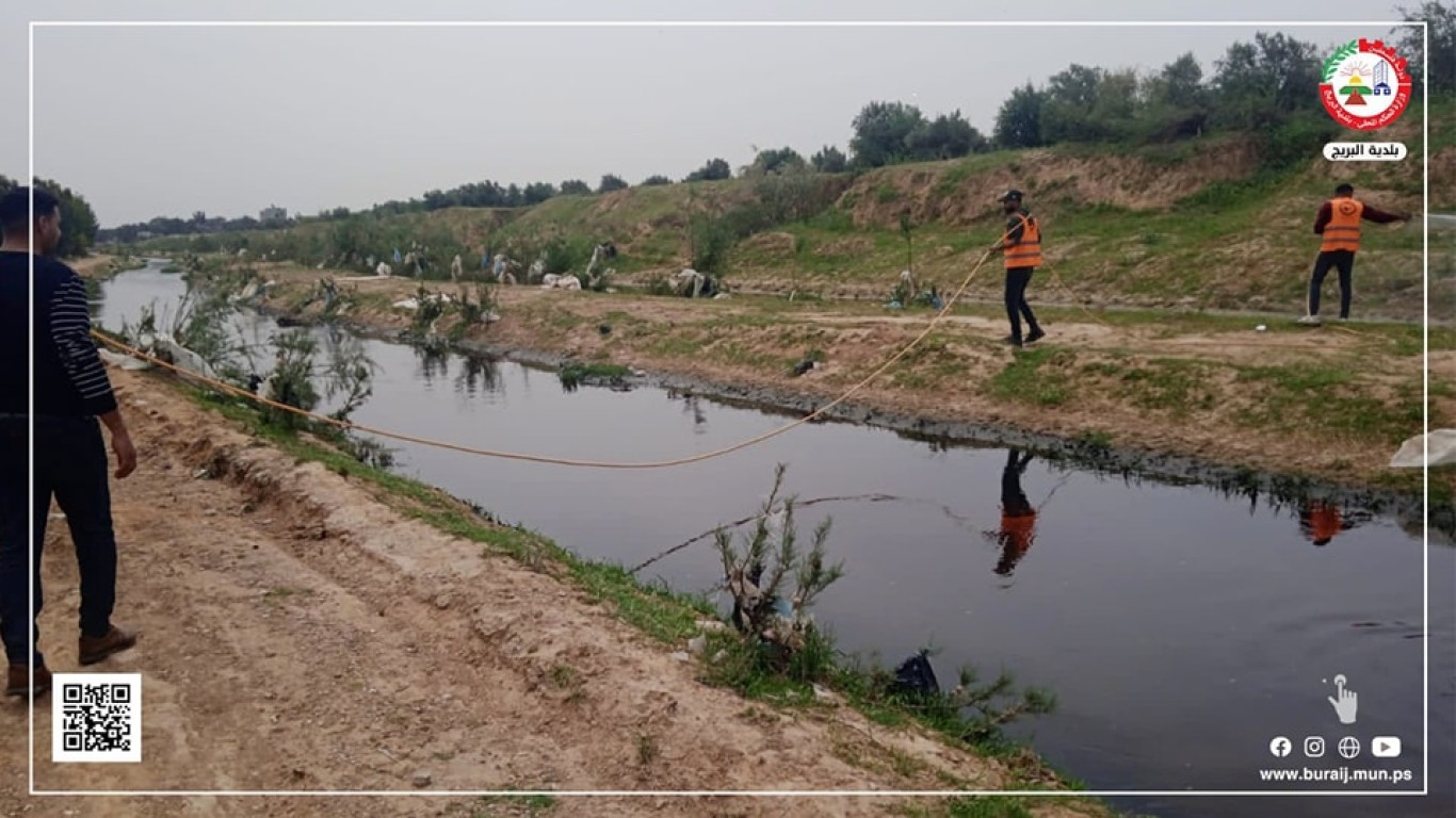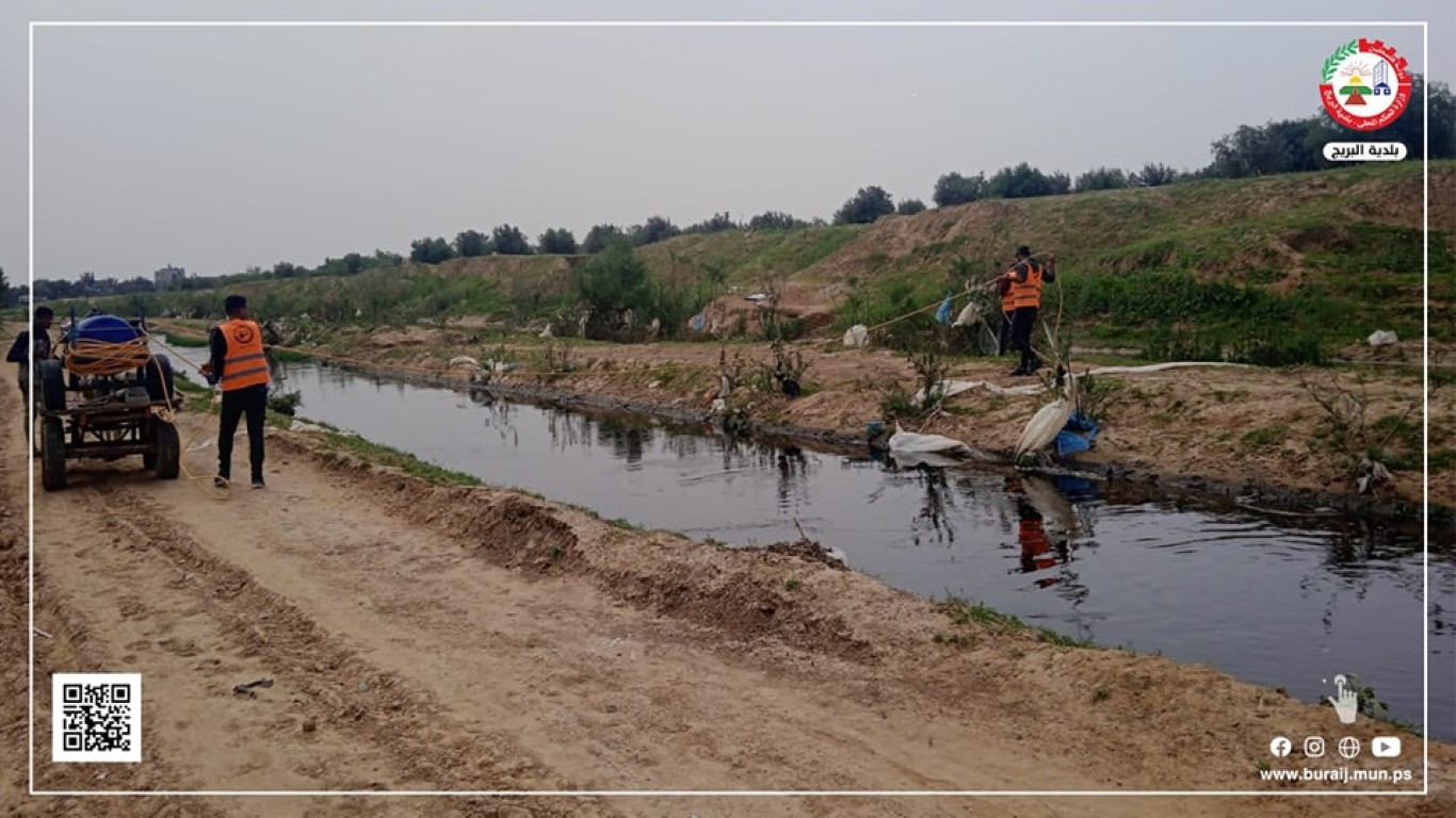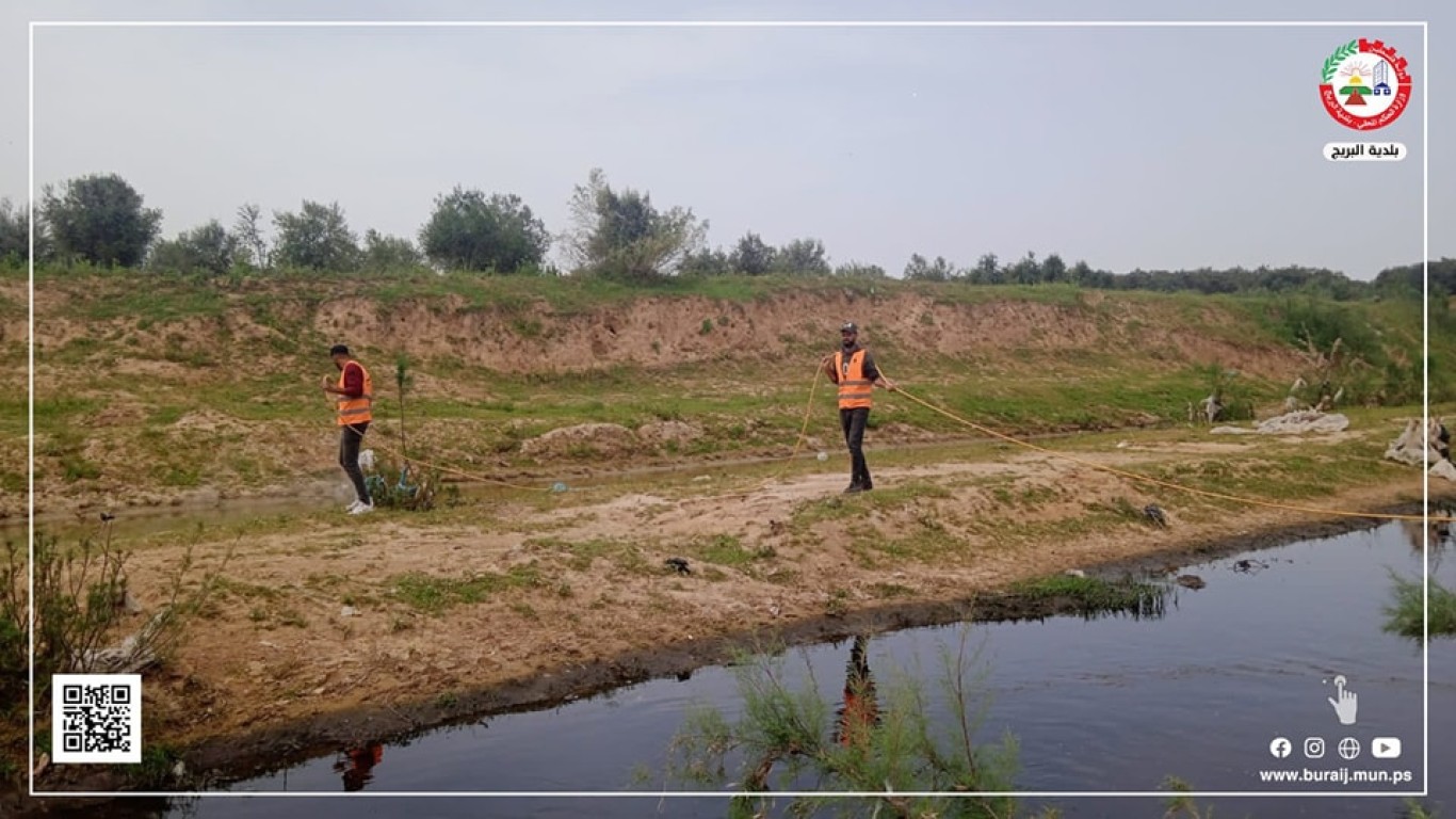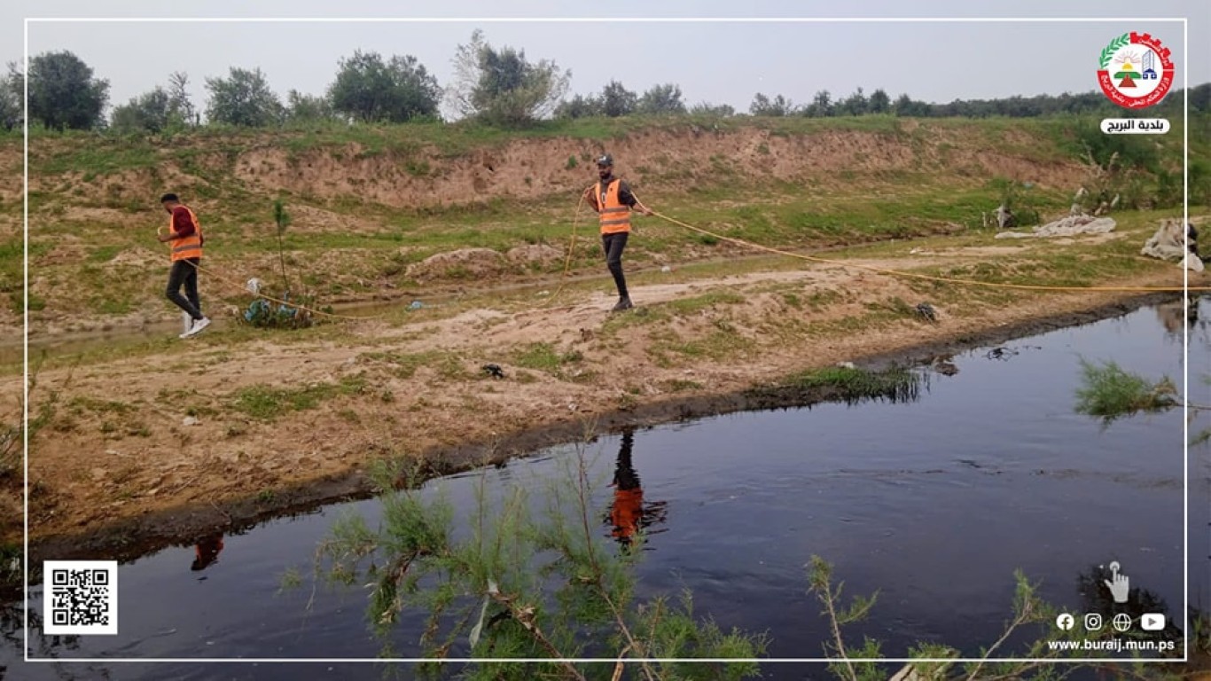 ضمن جهوده المستمرة في مكافحة حشرة البعوض خلال أعمال رش البرك الجانبية بالمنطقة الغربية من وادي غزة بمادة ,BTi وأعمال إزالة الأعشاب العائمة في حواف المجر