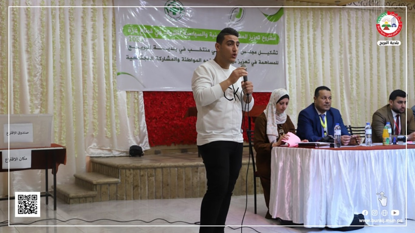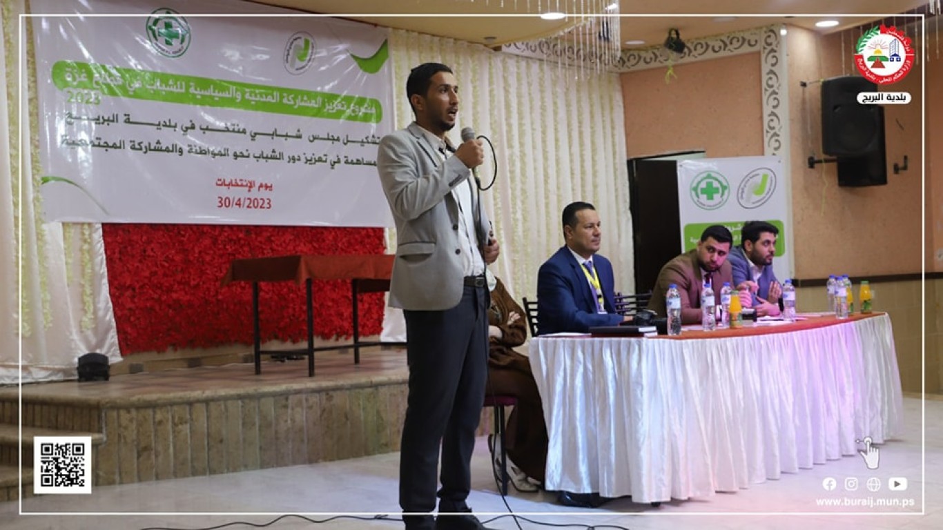 في أجواء سادتها الديمقراطية والروح التنافسية الخلّاقة والإيجابية بين شباب البريج، أظهروا فيها انتماءهم وترابطهم وعطاؤهم لوطنهم، انتخب أعضاء المجلس التأسيسي مجلسهم الشبابي لبلدية البريج، ضمن أجواء العرس الديمقراطي الوطني في البريج، حيث أعلنت لجنة انتخابات المجلس الشبابي عن انتخاب 13 عضواً للمجلس الشبابي، من أصل 47 ترشحوا من المجلس التأسيسي (98) عضواً، وتكونت اللجنة من: بلدية البريج، وزارة الحكم المحلي، الهيئة العامة للشباب والثقافة، جمعية منتدى التواصل، مكتب الفلسطينية للاستشارات والمحاماة.