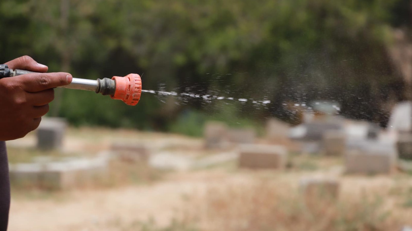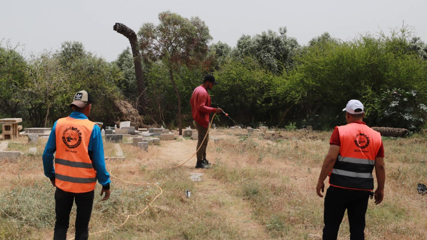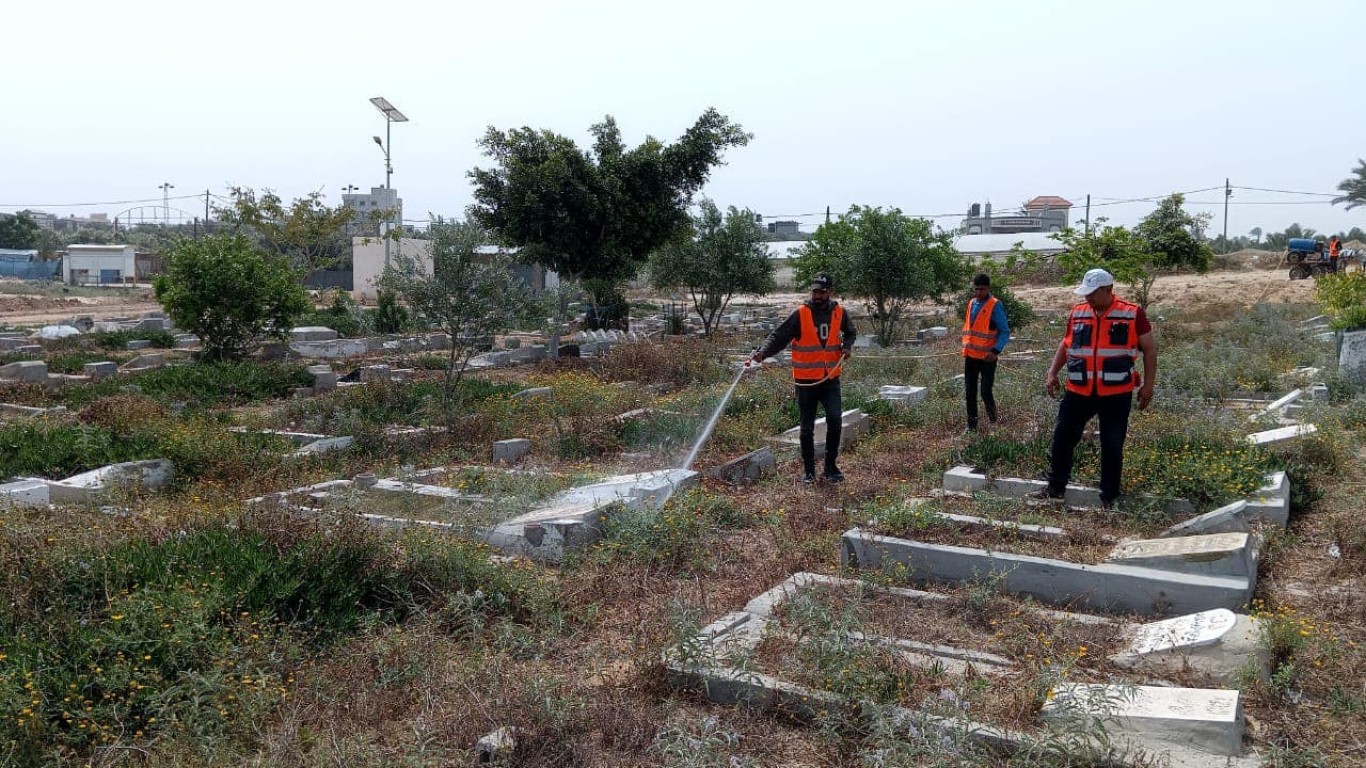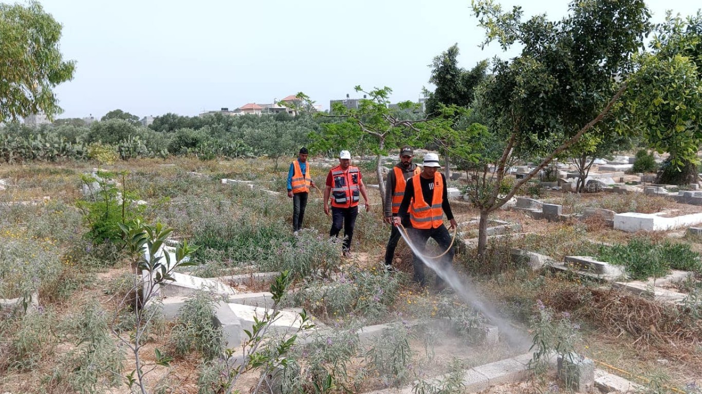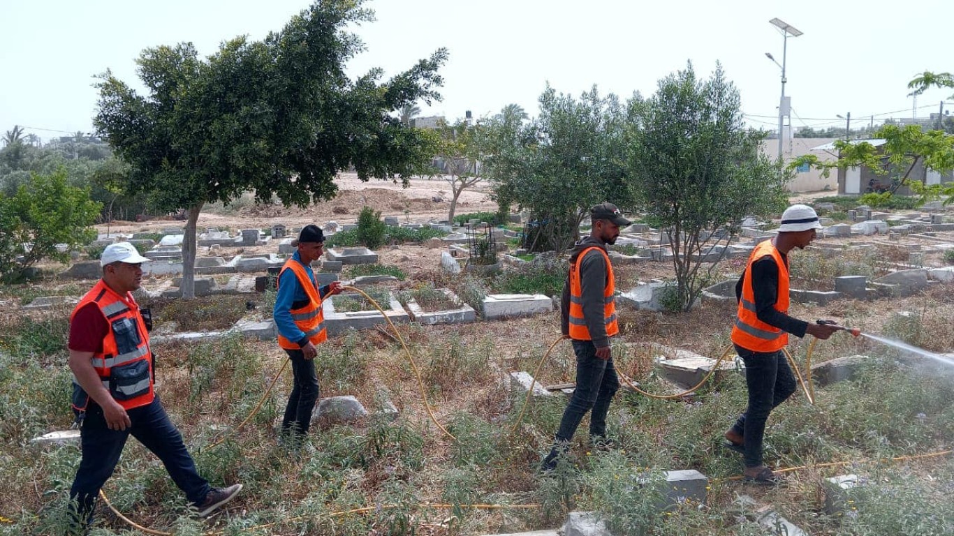 بلدية البريج تنفذ حملة شاملة لرش مقبرتي بلوك 8 وبلوك 1