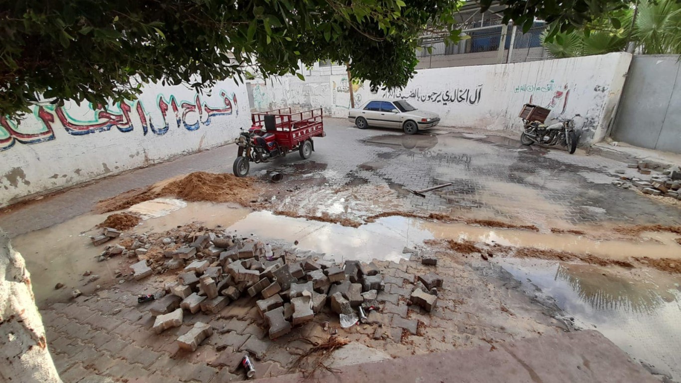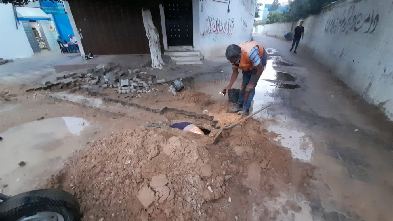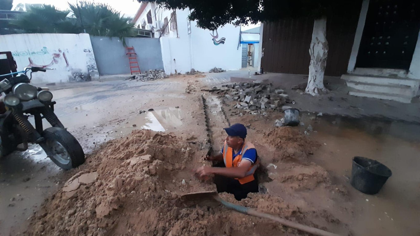 قسم المياه في بلدية البريج خلال أعمال صيانة خط مياه