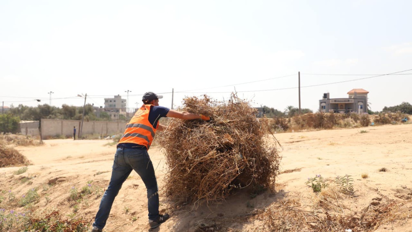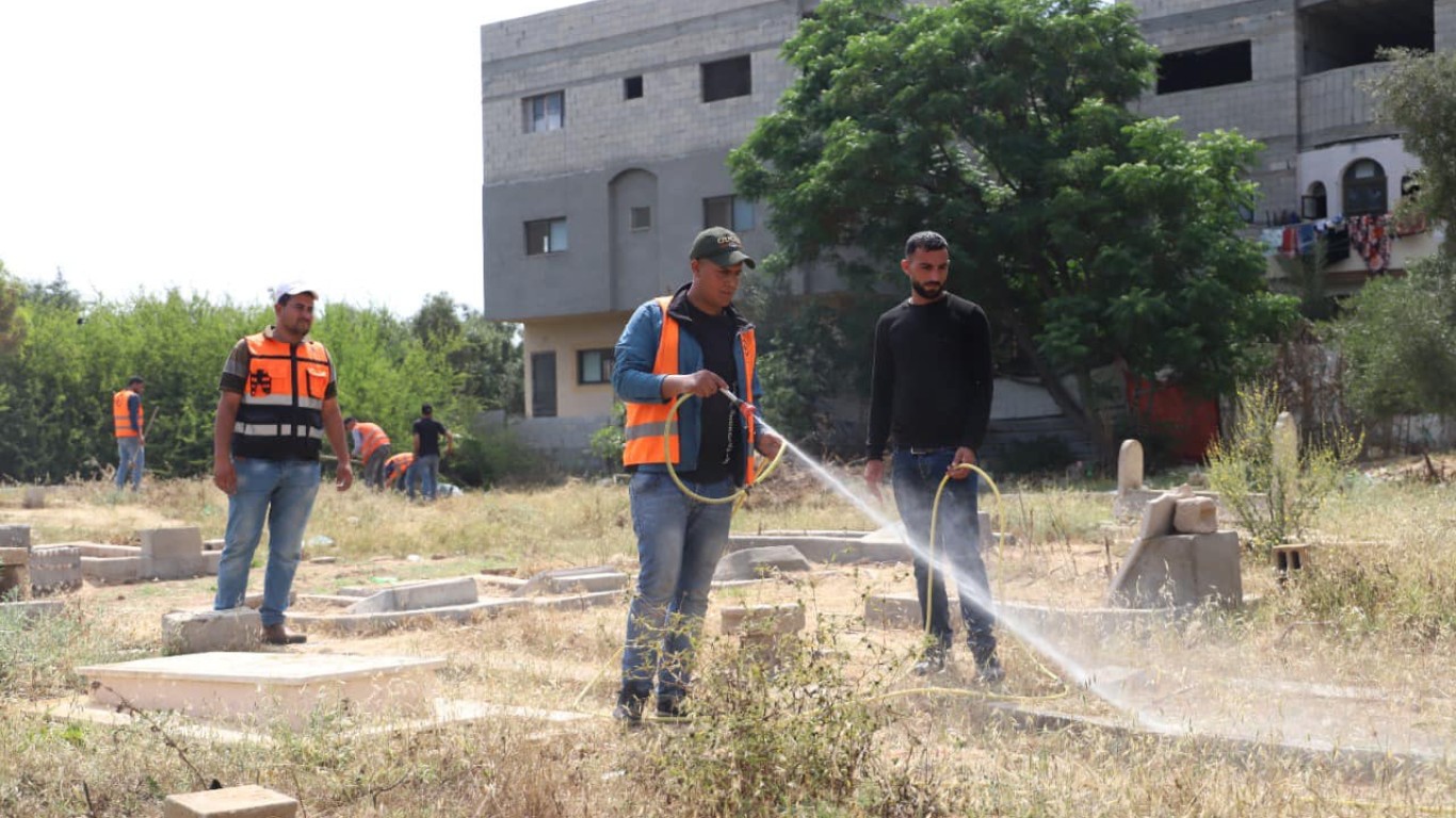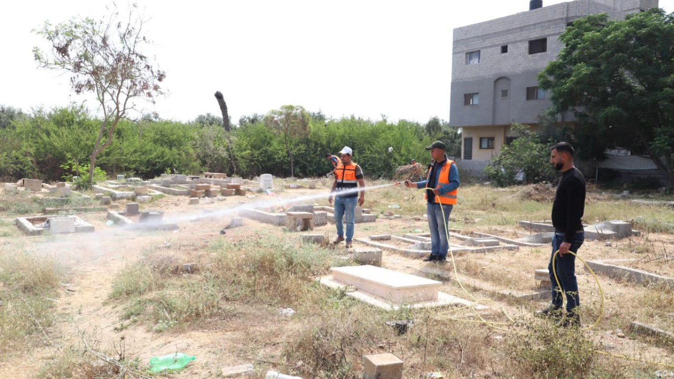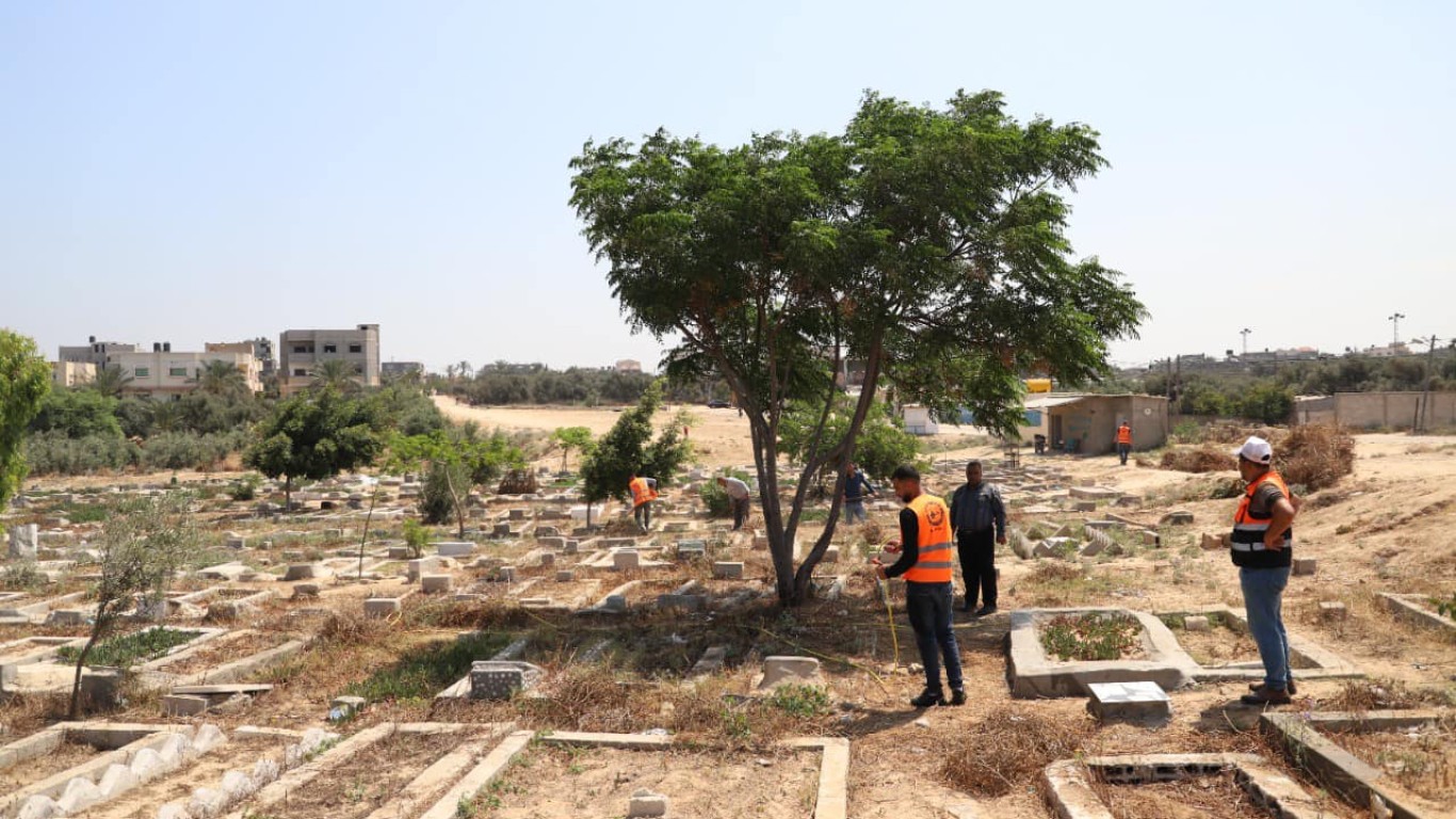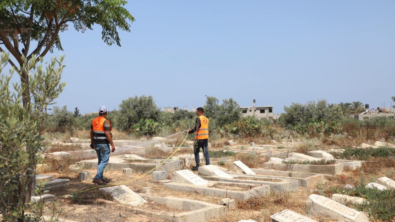قسم الصحة والبيئة يواصل أعماله ضمن حملة تعشيب وتنظيف ورش مقبرتي بلوك 1 وبلوك 8 .