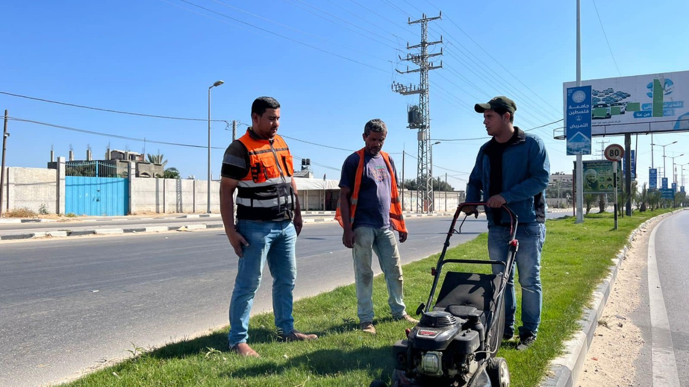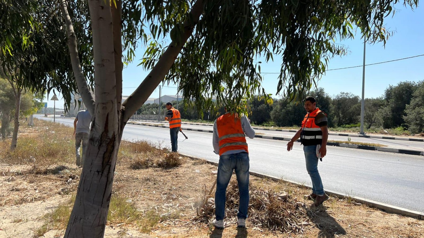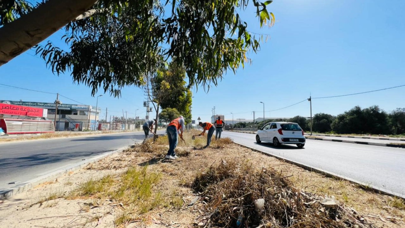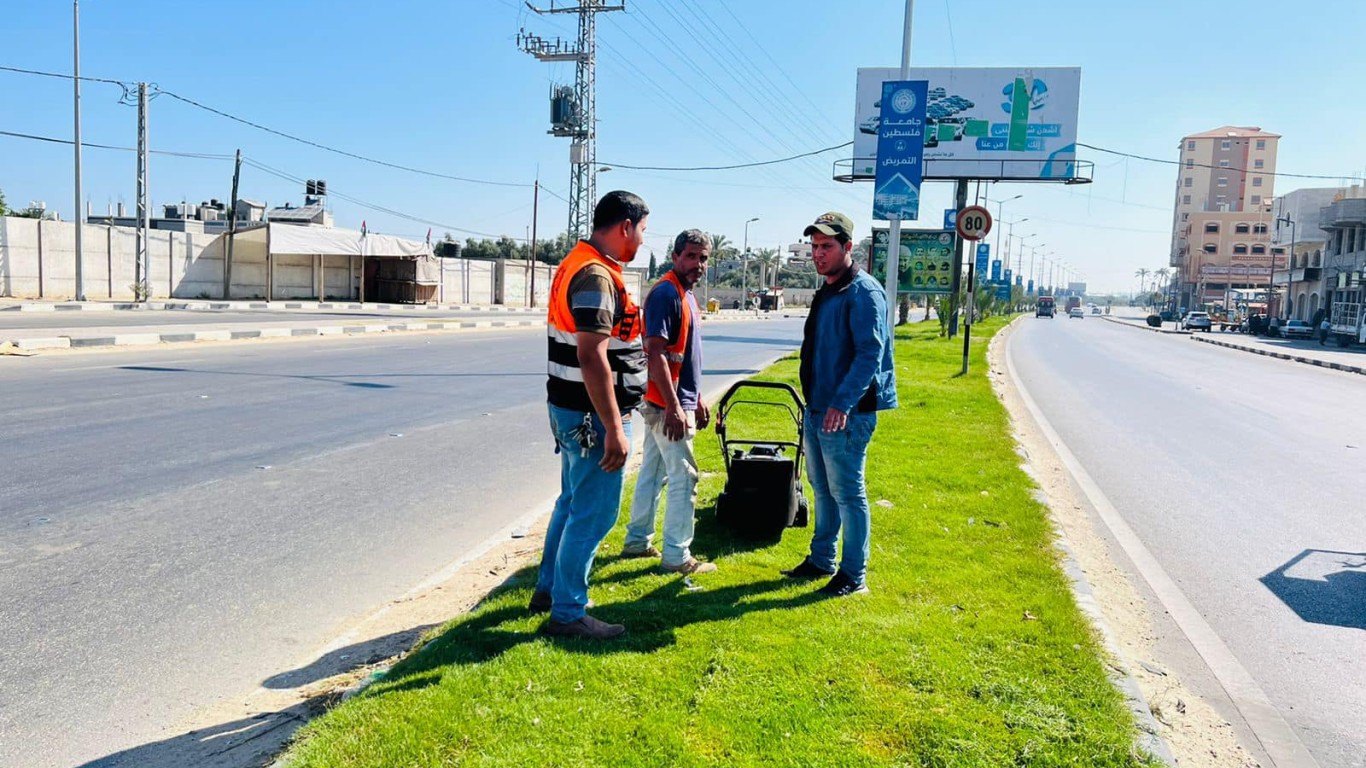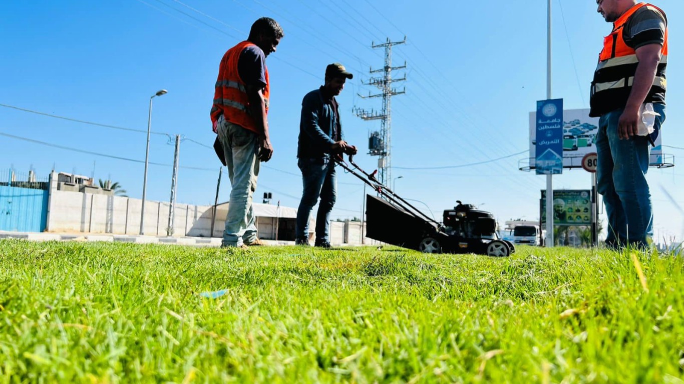 قسم الصحة والبيئة في بلدية البريج يواصل أعماله في عميلة تهذيب وتعشيب الجزيرة الوسطى في شارع صلاح الدين.
