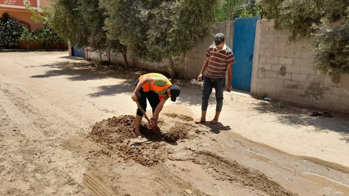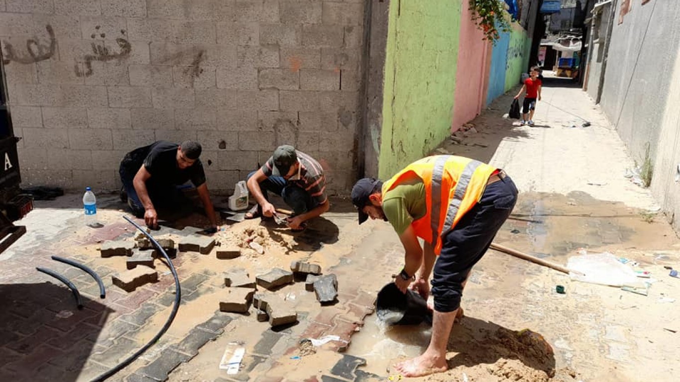 استجابة لإتصالات وشكاوى الأهالي في مناطق متعددة من مخيم البريج، قسم الصحة والبيئة في البلدية يجري أعمال صيانة لخطوط المياه وقنوات الصرف الصحي.
