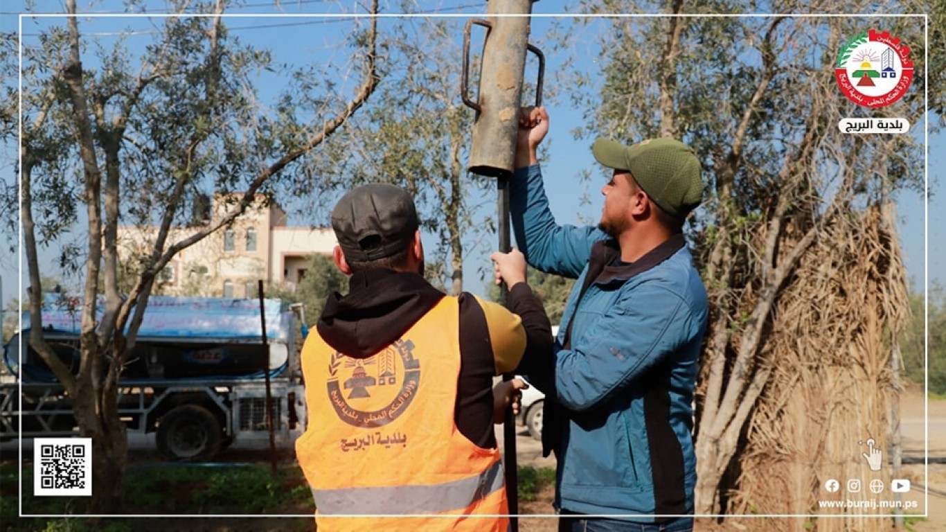 جانب من إستكمال العمل في توسعة شارع السلطان بعرض 20 متر، حيث يتم العمل على إزالة التعديات وتركيب سياج جديد في حدود الشارع، ضمن التخفيف من الإزدحام وتسهيل حركة المرور كونه يربط بين مخيمي البريج والمغازي.