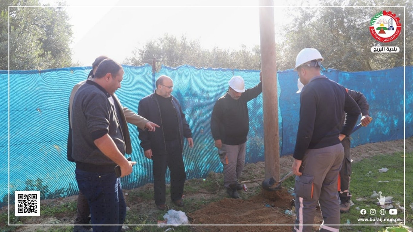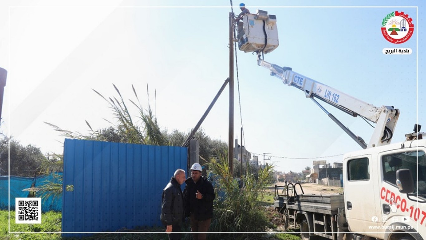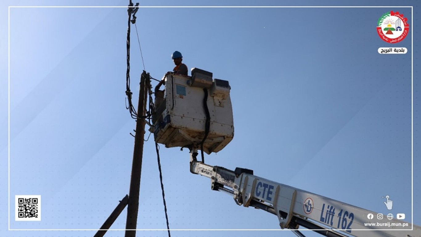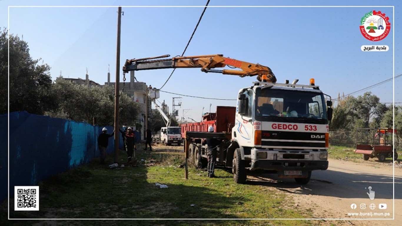 بلدية البريج وبالتعاون مع طواقم شركة الكهرباء، خلال أعمال نقل أعمدة الكهرباء إلى حدود شارع السلطان بعد توسعته، والذي يربط بين البريج والمغازي.