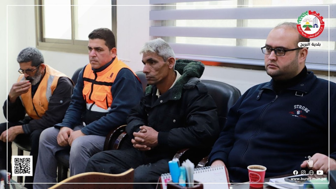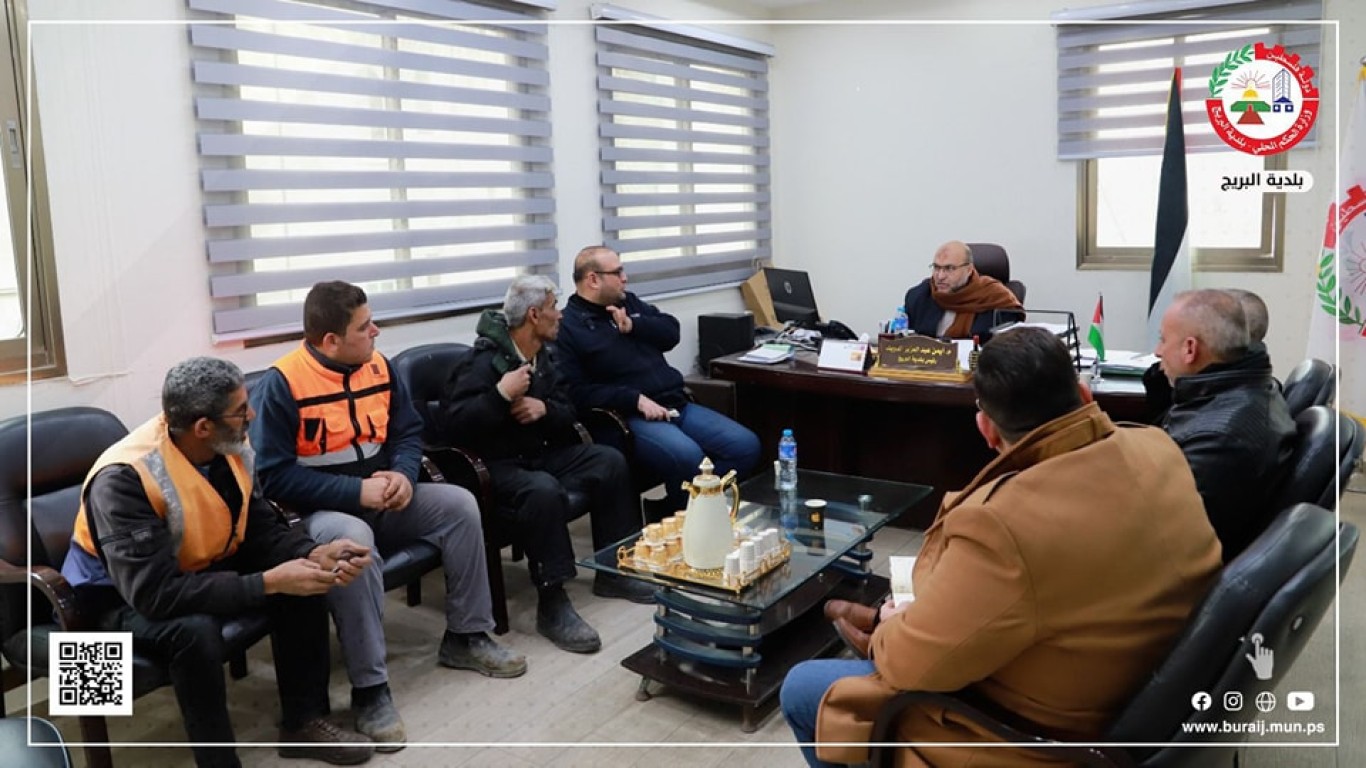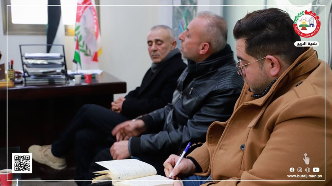 ضمن أعمال لجنة طوارئ الشتاء في بلدية البريج ولجنة الطوارئ في البريج لمناقشة استعدادات البلدية للمنخفض الجوي.