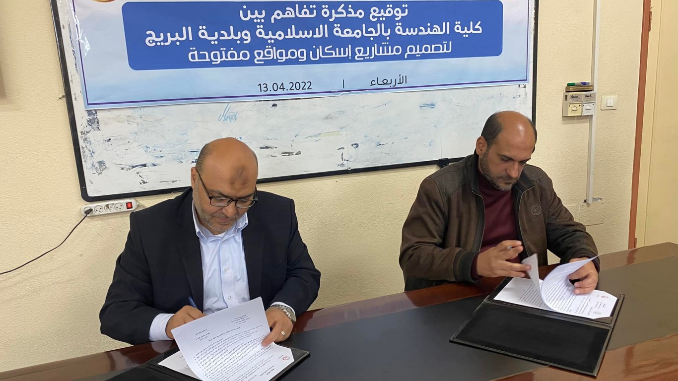 وقع رئيس بلدية البريج م. أيمن الدويك، اتفاقية تفاهم مع قسم الهندسة المعمارية في الجامعة الإسلامية، لتنفيذ مشاريع تخطيط وتصميم لعدة أماكن في البريج، ويأتي ذلك تشجيعاً من بلدية البريج للطلاب في قسم الهندسة المعمارية، وتدعيماً لأواصر التعاون بين المؤسسات المحلية،