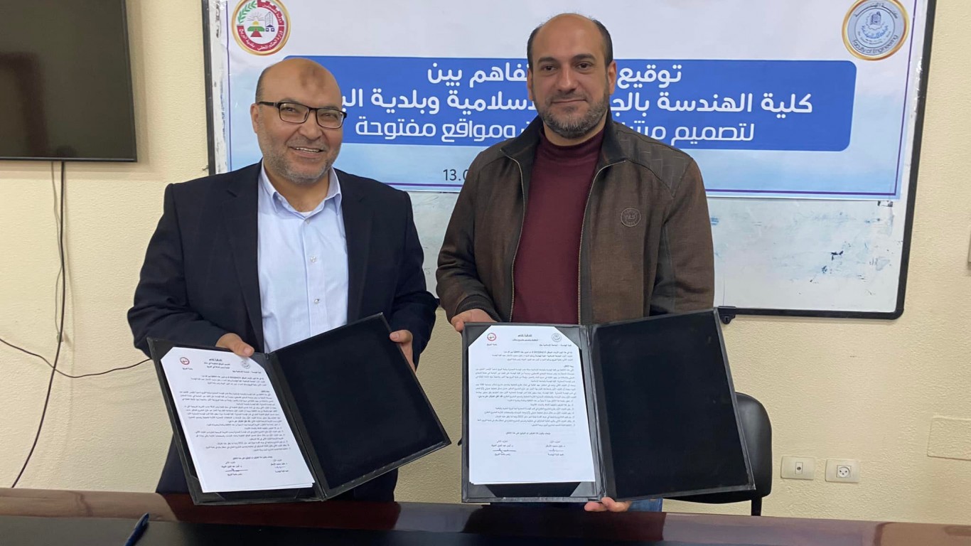 بلدية البريج توقع اتفاقية تعاون مع كلية الهندسة في الجامعة الإسلامية،